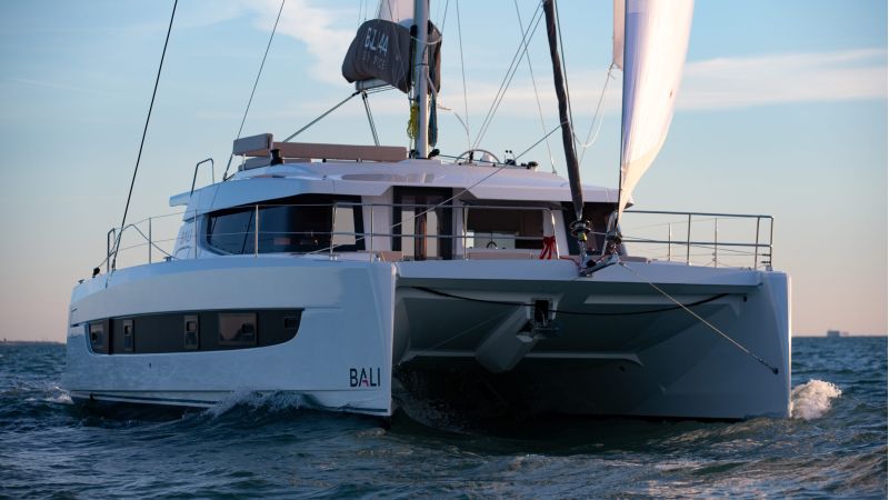 The Bali 4.4 Open Space continues to surprise with its innovative design and its large spaces adapted for unparalleled habitability, facilitating access to all its corners both inside and outside. Innovation Designed by Xavier Fäy and Samer Lasta, the Bali 4.4 Open Space is characterised by its one-piece hull for greater rigidity, with its main partitions made of polyester and secondary partitions in laminated plywood. Among its various innovations true to the Bali DNA we highlight: – The forward cockpit features lounge areas and a large sundeck. – The aft part of the cockpit offers storage and storage lockers for everything you need. – A tilting rear door and sliding windows. – A lounge area with panoramic views on the roof, accessible from both sides of the boat. – An interior access door to the forward cockpit. Comfort The Bali 4.4 Open Space has a perfectly partitioned interior, accessible through the rear up-and-over door (exclusive to Bali): – Fully equipped kitchen, with ample space, connected to the living room. – Lounge for 8 to 10 guests, perfectly lit by sunlight and artificial light, with a 360º sea view. – Large dining table. – The cabins have the maximum comfort and privacy, with perfectly illuminated cabins, a careful design. – Bathroom for each cabin with shower and toilet. – Owner’s suite (optional) occupying the entire port side float with bathroom, sofa and double bed.