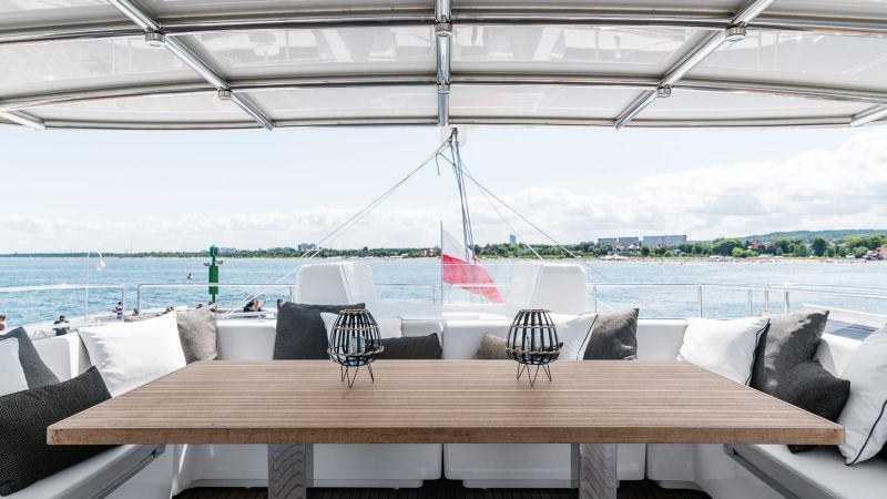 The Sunreef 80 is an all-around luxury sailing catamaran, ideal for exclusive getaways, charter, and transoceanic adventures. This model boasts a combination of exterior and interior areas easily flowing into one another. The clever bridge deck and superstructure design allow for a superior level of comfort onboard, whereas the generous teak use, high bulwarks, and classy lines underscore her modern style with a classic edge. With a completely fresh superstructure concept, this electric sailing catamaran gains a saloon plan with an outstanding potential for customization. A vast, central lounging space with a panoramic view and endless layout possibilities, it opens both onto the bow terrace and cockpit. The bow benefits from its cozy lounge that is well shielded from sun and wind. To the aft, the saloon merges with the generous cockpit which is further extended by a large aft platform for carrying the tender. All the areas combined form a universal, open environment where flexibility and freedom reign. While housing the main helm, the 54m² flybridge is dedicated to leisure with more than enough space for movable furniture, a jacuzzi, fully equipped wet bar, a barbecue station, and large sunpads. The hulls provide impressive volumes to set up a custom layout including airy, luxurious guest cabins, and an opulent master suite with a walk-in dressing, desk, sofa, retractable TV, and an immense bathroom. A perfect setting to unwind and relax after a long day in the sun. What makes the experience more worthwhile is the opportunity to sail more sustainably. Choose green, clean yachting, choose Sunreef 80 Eco: an eco-catamaran that redefines luxury sailing. Available in classic, solar and electric catamaran versions, it offers versatility and sustainability for discerning sailors.