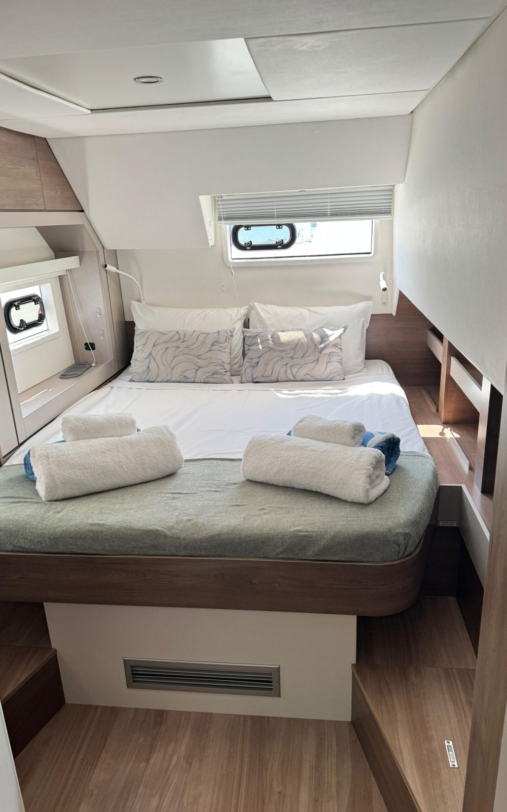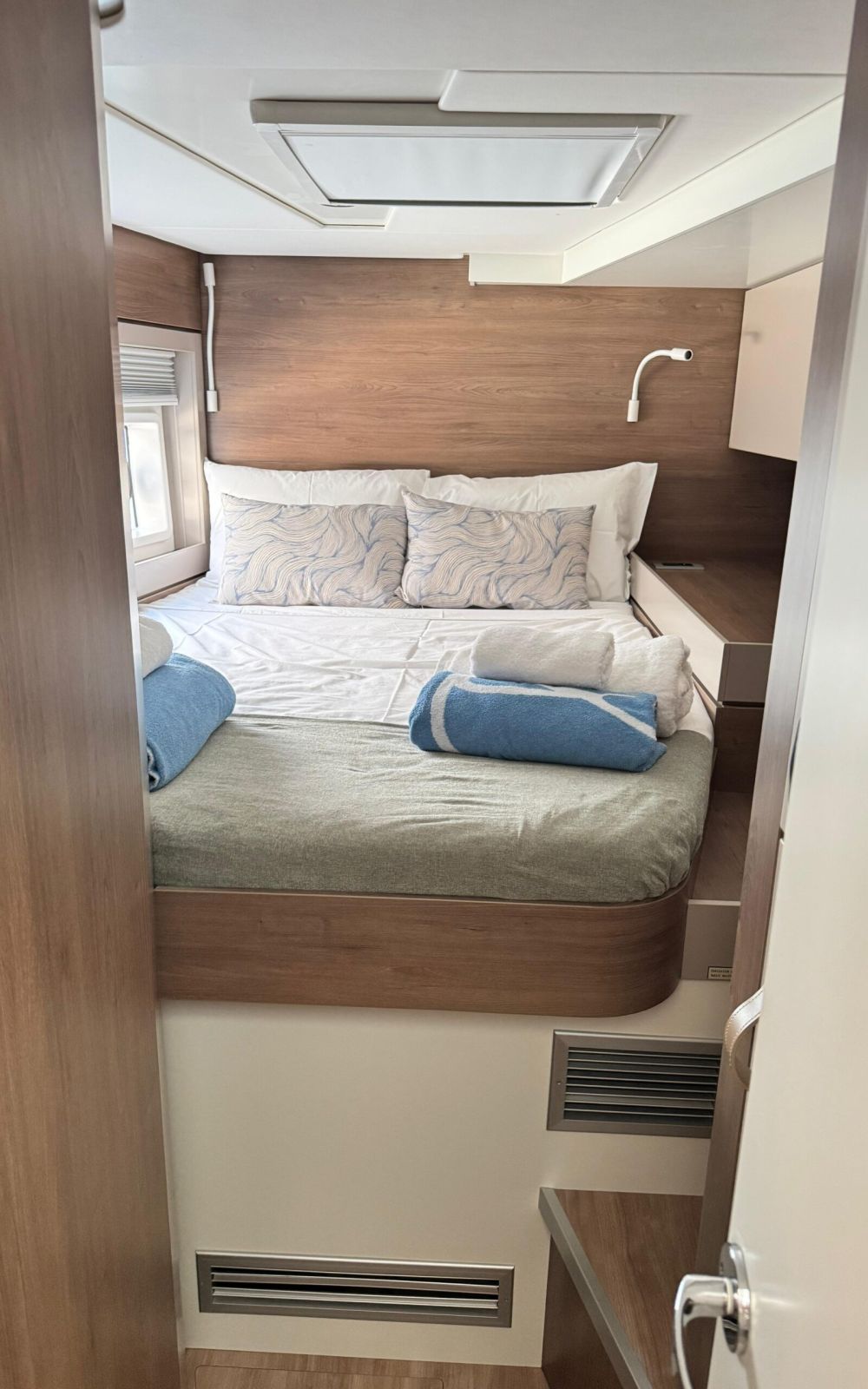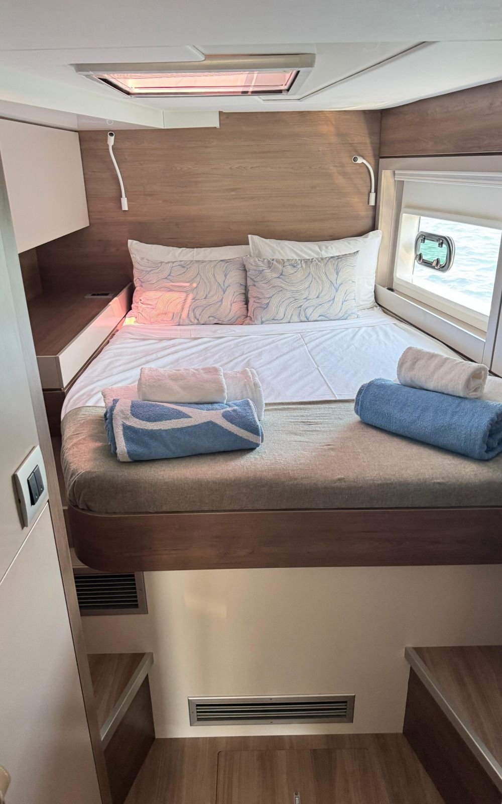 El Amazigh es un catamarán de segunda mano de un año de antigüedad, perfecto para la vida a bordo. Un espacio compacto con todas las prestaciones y comodidades. Dispone de 2 cabinas Master, 2 Dobles, 1 literas, y 1 camarote de skipper.