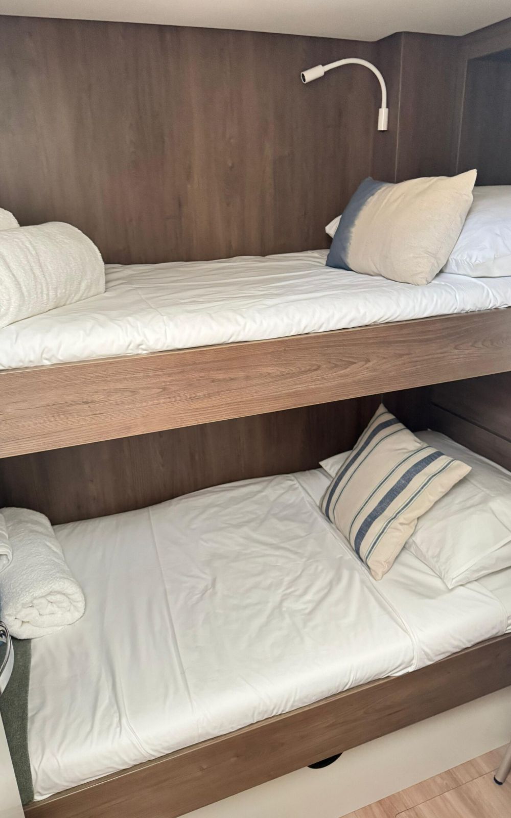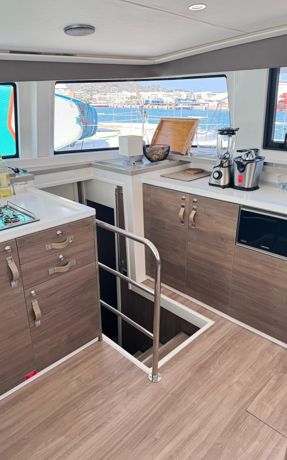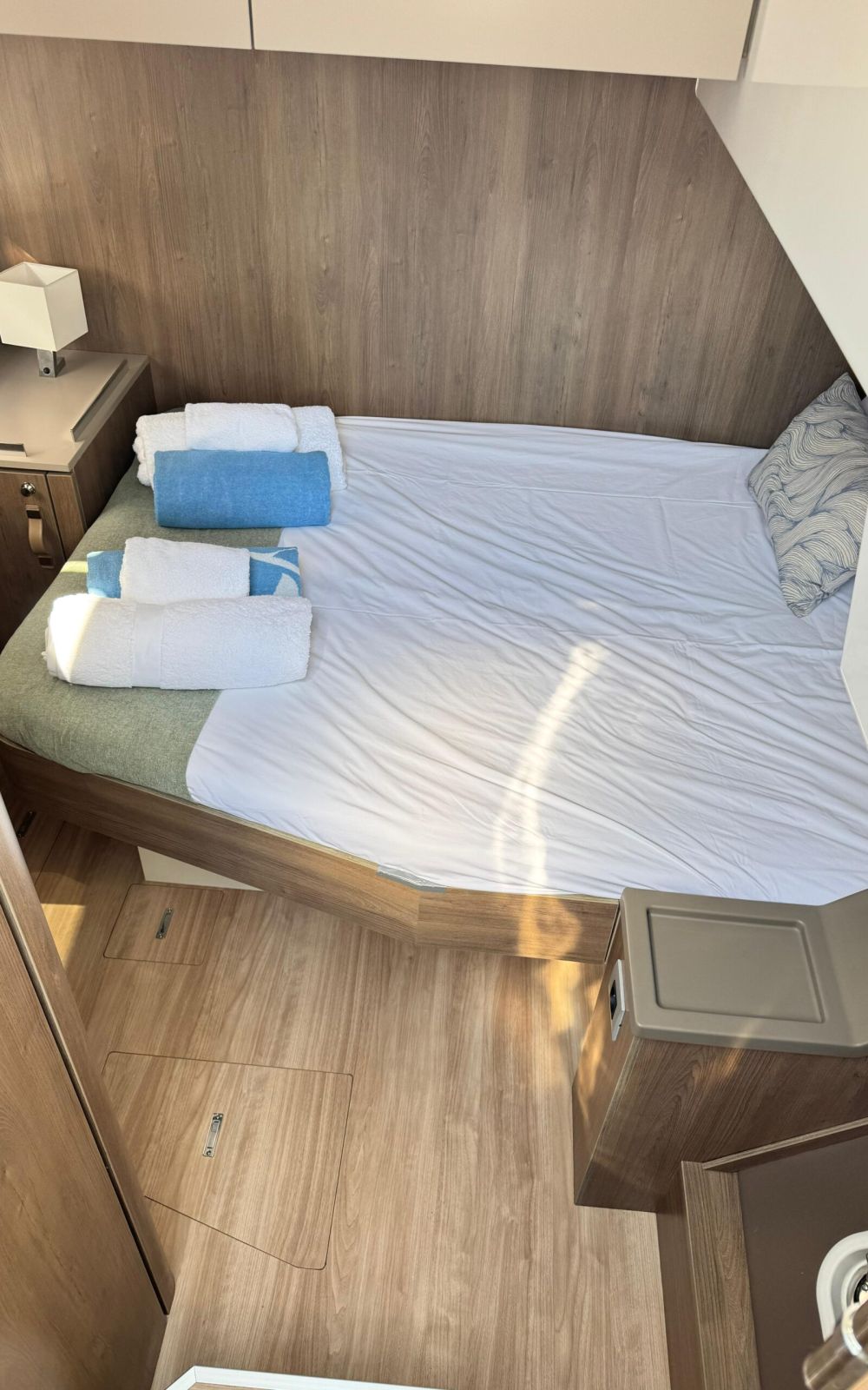 El Amazigh es un catamarán de segunda mano de un año de antigüedad, perfecto para la vida a bordo. Un espacio compacto con todas las prestaciones y comodidades. Dispone de 2 cabinas Master, 2 Dobles, 1 literas, y 1 camarote de skipper.