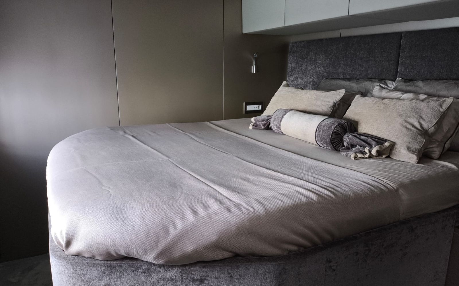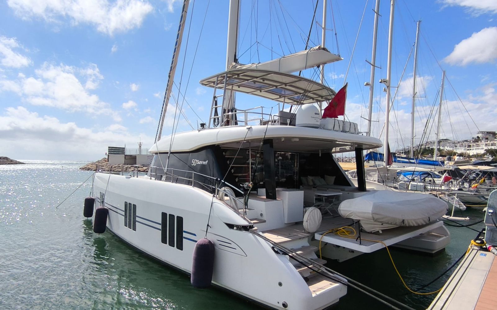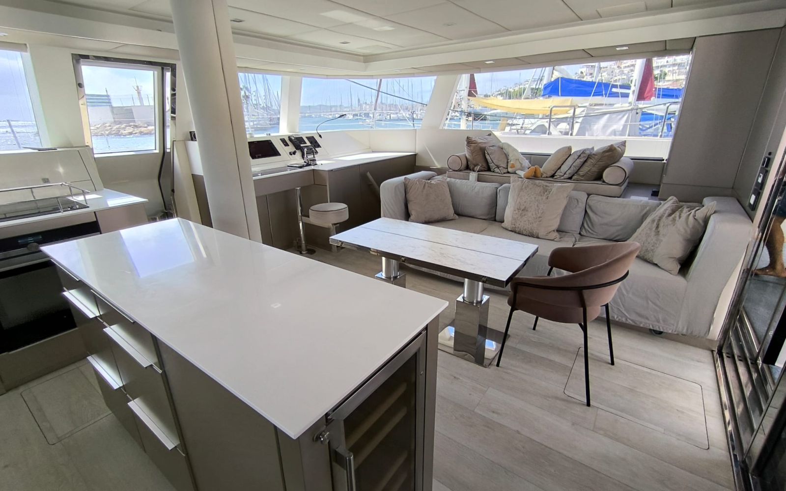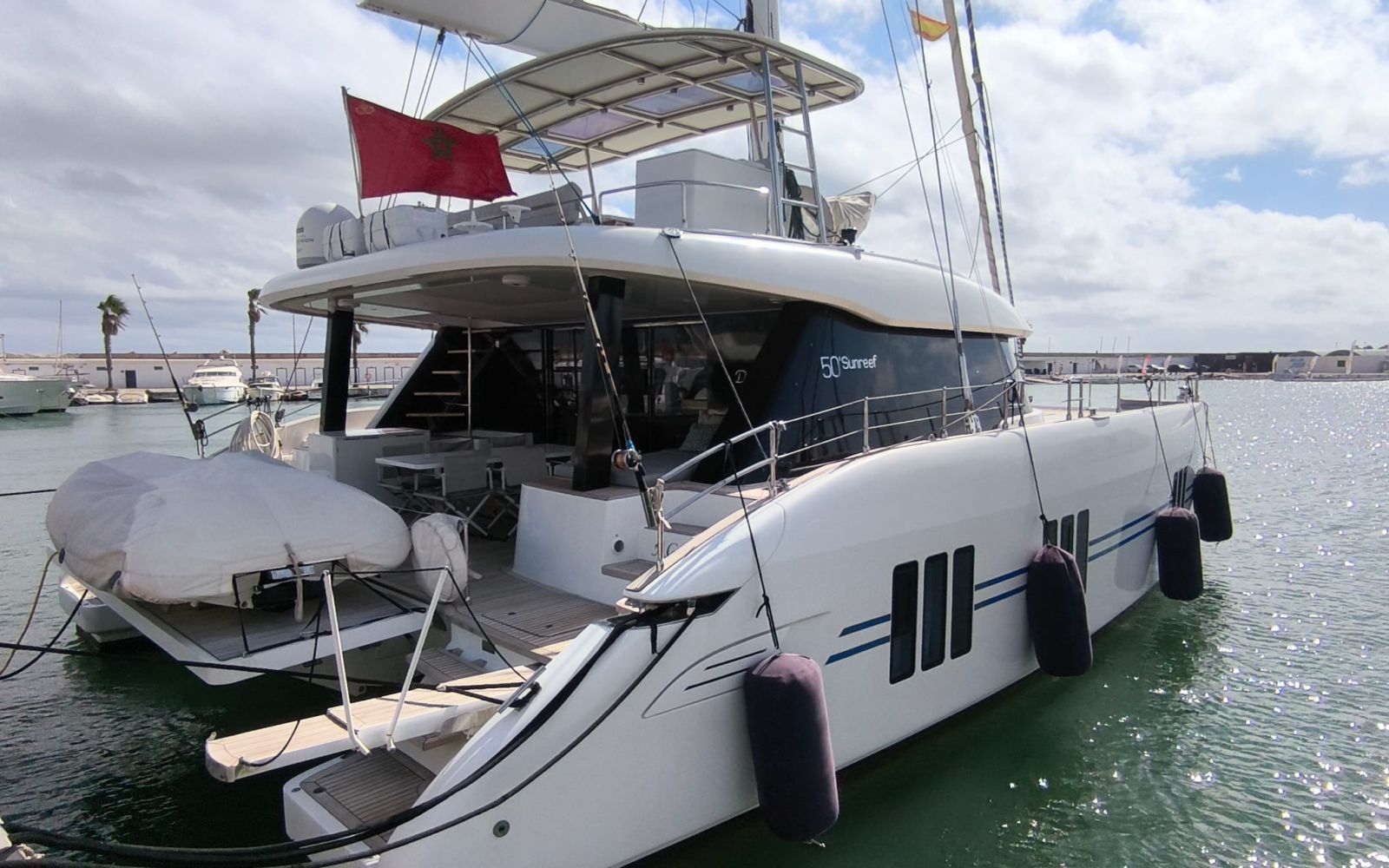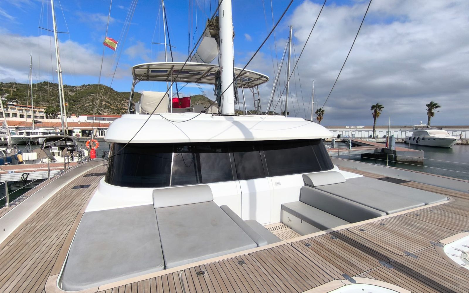 Destinado a la navegación durante todo el año, el Sunreef 50 Dolphin fue completamente personalizado según las especificaciones exactas de sus propietarios para proporcionar las mejores condiciones para largos cruceros familiares. Con una increíble cantidad de espacio, este catamarán de vela ofrece lo mejor del lujo en un paquete compacto. El salón principal del Sunreef 50 Dolphin cuenta con una gran cocina con una isla de cocina. El diseño inteligente de la cocina proporciona mucho espacio de almacenamiento y fácil acceso a todas las comodidades. La mesa de comedor a estribor es tanto ajustable en altura como modular para acomodar a todos los huéspedes a bordo. También cuenta con un acogedor rincón de lectura junto al acristalamiento panorámico de la cubierta principal. El salón se integra suavemente en el cockpit de popa y su vasto espacio de comedor al aire libre con puertas correderas. Con un diseño de cuatro cabinas, el Sunreef 50 Dolphin da la bienvenida a hasta ocho huéspedes a bordo. La suite principal ocupa una parte importante del casco de estribor con una cama doble, un gran vestidor, un escritorio y un generoso baño. A babor, encontrará tres cabinas para huéspedes, incluida una equipada con literas para acomodar a los niños. La decoración interior de este catamarán de vela es una relajante mezcla de gris claro, tonos metálicos y toques de carbón y marrón. Los baños en suite aireados a bordo del Sunreef 50 Dolphin están revestidos de brillante cuarzo.